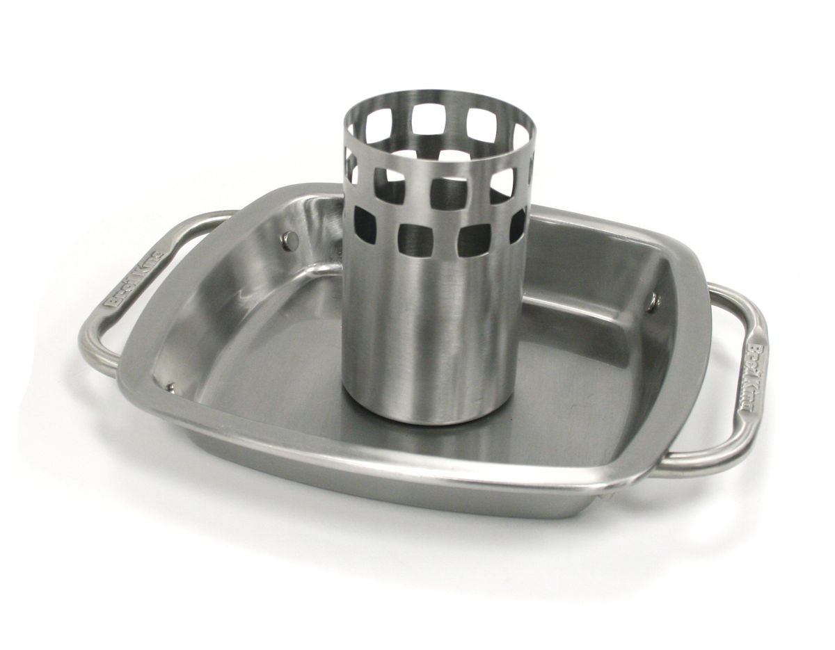 Kuřecí pekáč Broil King® Imperial ™ je vyroben ze 100% nerezové oceli s těžkým dnem o rozměrech 22,9 x 22.9 cm. Twist držák na pivo nebo směs koření má dostatečně velkou kapacitu a otvory pro lepší odpařování.