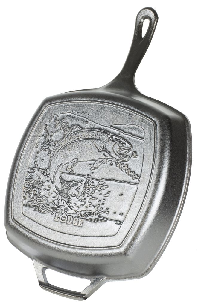 Čtvercová litinová grilovací pánev Lodge Wildlife Series – Fish 26 x 26 cm je vyrobena z odolné čisté litiny, která zajišťuje vynikající tepelnou vodivost a schopnost akumulovat a dále předávat teplo – ideální pro restování, pečení i dušení. Dno s žebrovaným povrchem dodává masu atraktivní grilovací otisk. Pánev váží zhruba 2,9 kg a má rukojeť i madlo pro pohodlnou manipulaci i v troubě, na sporáku, grilu či dokonce nad ohněm.