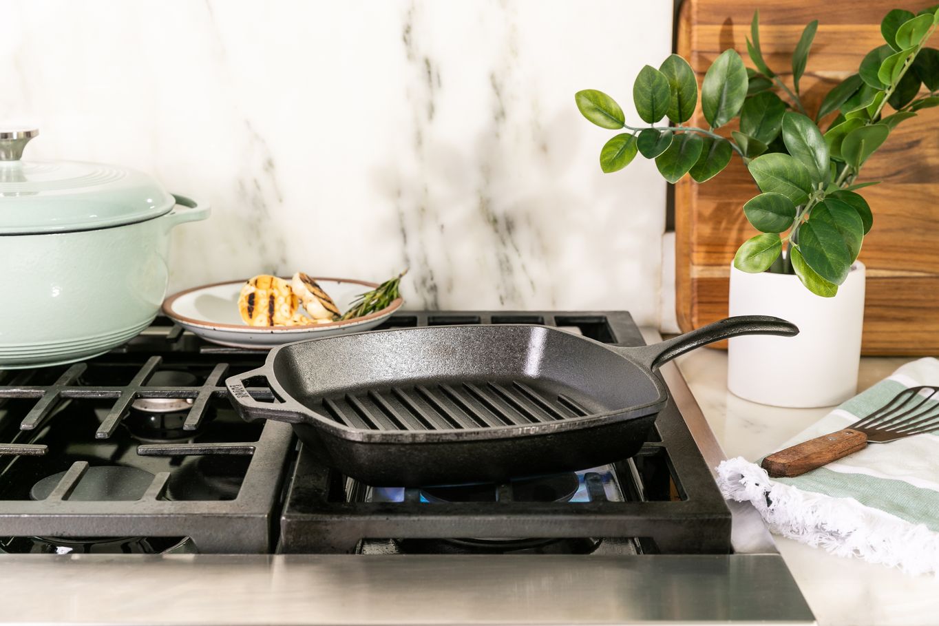 Čtvercová litinová grilovací pánev o rozměrech 26 × 26 cm je vyrobena z masivní litiny a nabízí vynikající tepelnou akumulaci a rovnoměrné rozložení tepla. Je ideální pro perfektní opečení steaků, zeleniny nebo mořských plodů. Žebra pánve vám zejména na mase vytvoří charakteristické otisky. Hodí se nejen na plynový sporák a indukční desku, ale i do horkovzdušné trouby, do grilu či přímo do venkovního ohniště. Litina je bez chemického nepřilnavého povrchu (pouze zapečený jedlý olej do povrchu litiny), což zaručuje zdravotní nezávadnost.