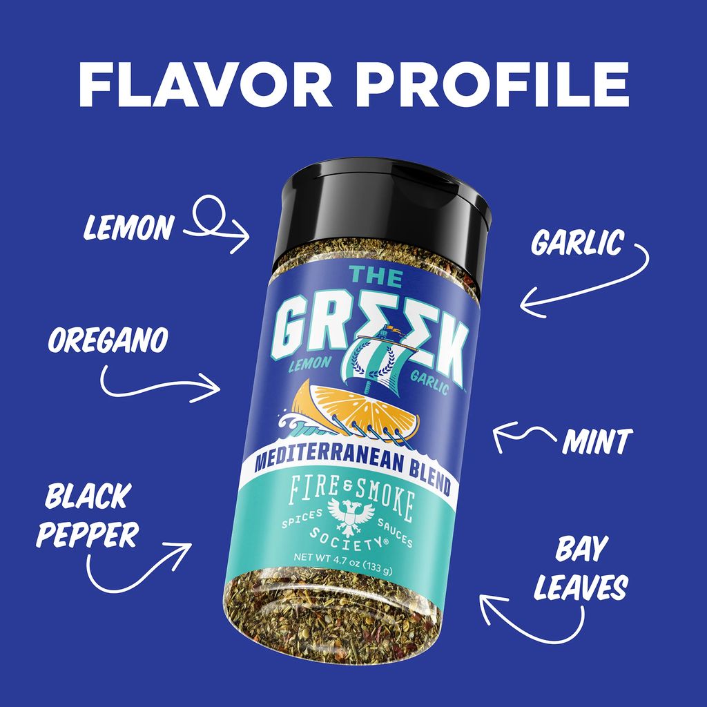 Ponořte se do středomořské chuti s kořením The Greek! Tato unikátní směs koření v sobě spojuje černý pepř, oregano, rozmarýn, mořskou sůl, bobkový list, citron a špetku máty. Ideální k masu (zejména k rybám a krevetám), zelenině, kebabu, do dresinků a marinád.