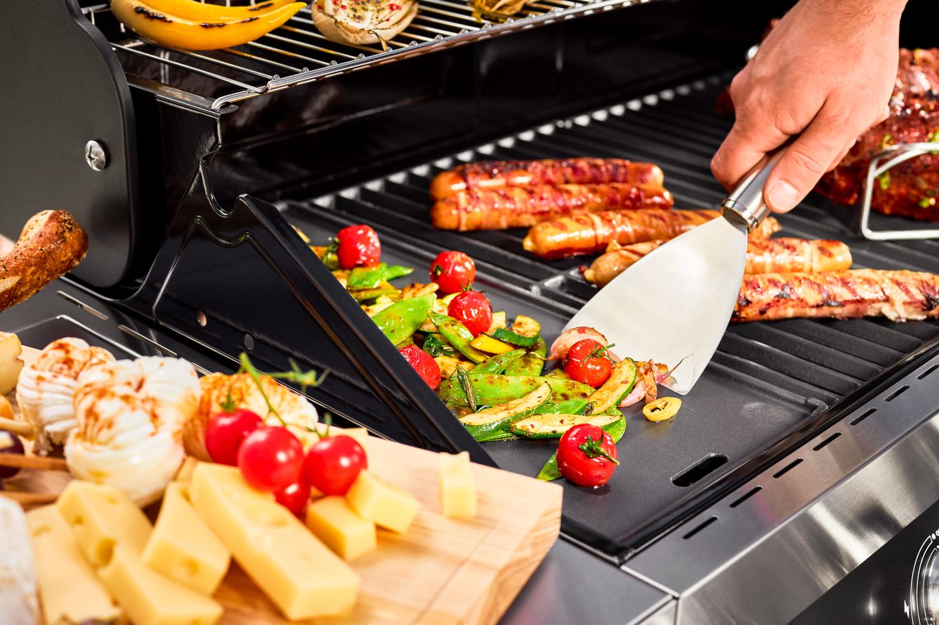 • Hladká strana pro přípravu menších potravin, jako např. krevety, burgery, zelenina atd.
