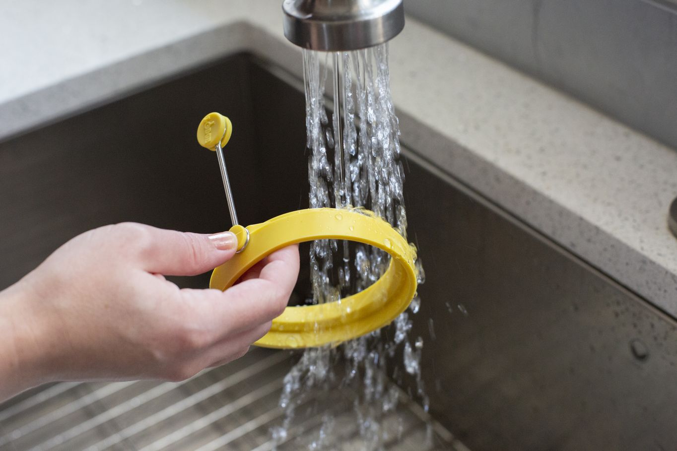 Křehké vajíčko se z něj po upečení uvolní bez potíží a údržba je velmi jednoduchá – lze jej mýt v myčce. Tento kroužek zvyšuje komfort i estetiku vaření při běžném snídaňovém menu.