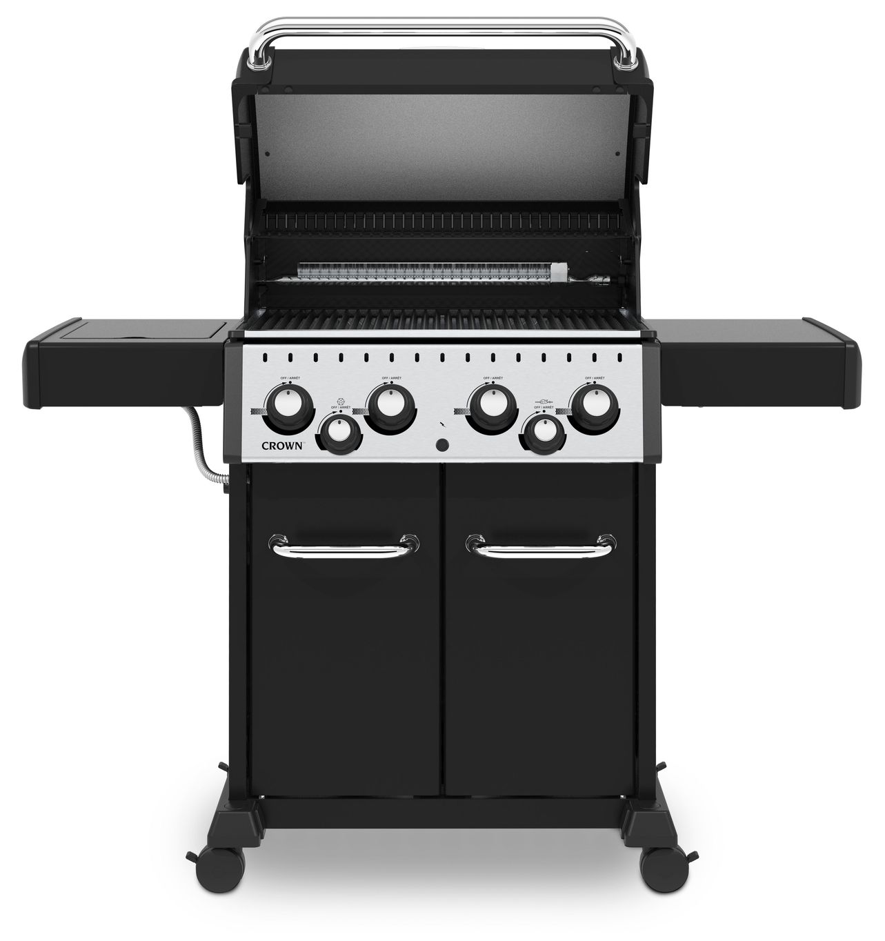 Plynový gril Broil King Crown 490 je nový gril pro sezonu 2022. Disponuje čtyřmi hlavními nerezovými hořáky a úctyhodnou grilovací plochou 64 x 45 cm. Grilovací rošty jsou litinové a dělené na 3 části. Součástí základní výbavy je i vyvýšený ocelový posmaltovaný „dohřívací“ rošt.