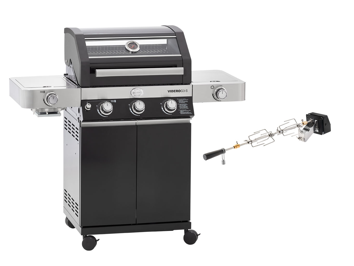 V postranních stolcích se ukrývá infračervený hořák (Primezone) dosahující teploty až 800 °C a klasický plotýnkový hořák. Ten se skvěle hodí pro přípravu omáček a příloh, zatímco Primezone oceníte především při úpravě šťavnatých steaků s křupavou krustou. Pokud zrovna ani jeden hořák nevyužíváte, poslouží vám stolky jako odkládací plocha pro marinádu nebo grilovací kleště.