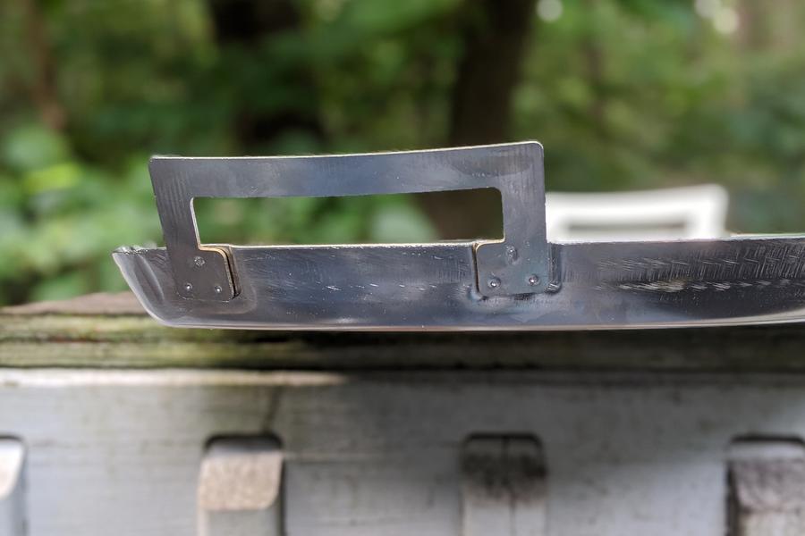 (Poznámka: Nerezová ocel se může deformovat, pokud je umístěna nad extrémní teplo. Při použití jako griddle byste měli použít pouze malé množství dřevěného uhlí, abyste zabránili deformaci. Před položením přímo nad uhlíky pánev nejprve předehřejte nepřímou metodou na druhé straně grilu.)