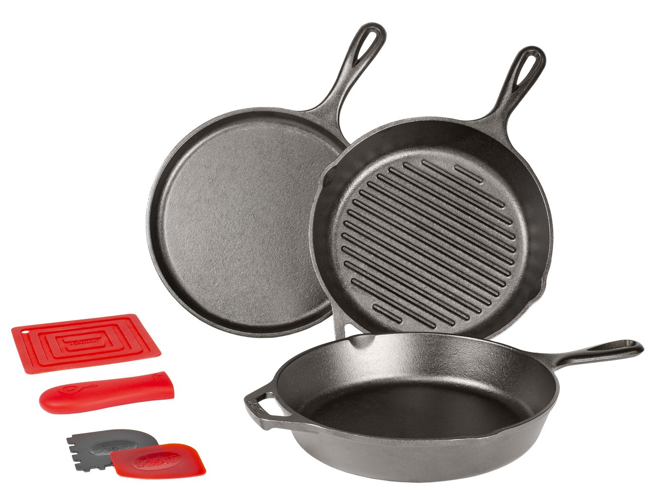 Lze je používat na plynovém, indukčním i sklokeramickém sporáku, v troubě, v grilu či přímo na uhlících – univerzální pro vaření, restování, dušení i pečení. Díky seasoningu (přírodní nepřilnavý povrch) jsou snadné na údržbu – stačí je umýt teplou vodou, jemným kartáčkem, lehce potřít olejem, osušit a pánve jsou připraveny k dalšímu použití. S touto sadou můžete připravovat jak restované, tak grilované pokrmy z masa, smashburgery, ale i lívance nebo palačinky. Litinové nádobí Lodge charakterizuje odolnost a dlouhá životnost, ideální pro všechny nadšence venkovního i domácího vaření.