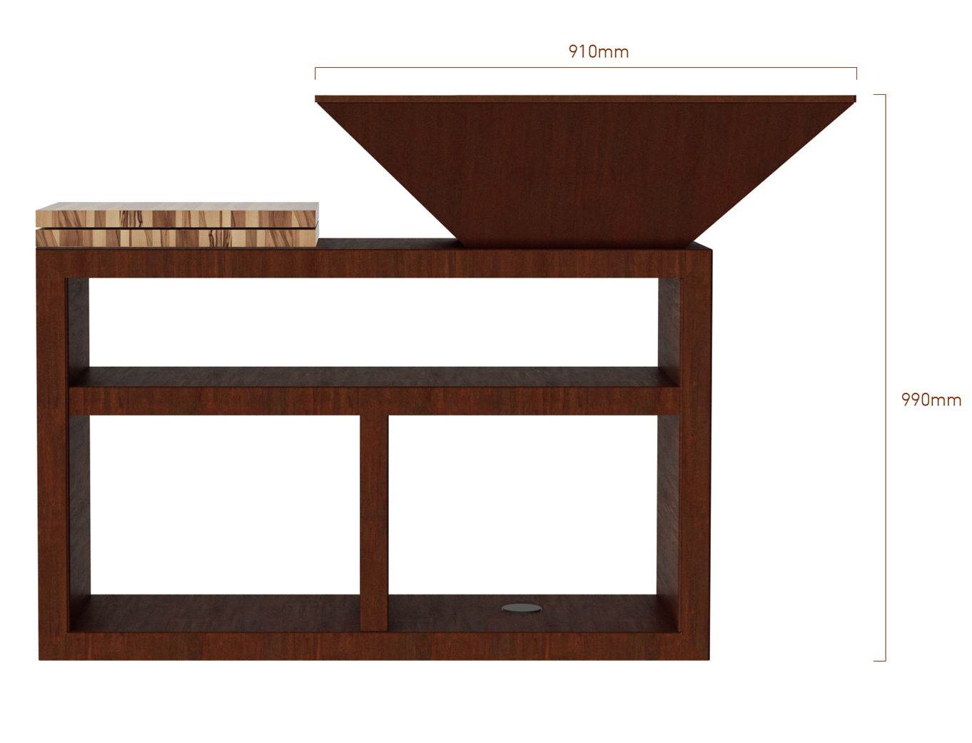 Vysoký a speciálně prodloužený podstavec nabízí větší zásobník dřeva, místo pro odložení nádobí i profesionální řeznický špalek. Připravujte a servírujte pokrmy pohodlně přímo v blízkosti grilu.